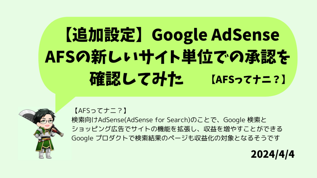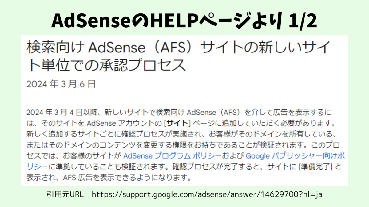 先日よりAdSenseのページに行くと、検索向け AdSense(AFS)サイトの新しいサイト単位での承認プロセスってのが表示されるようになりました。